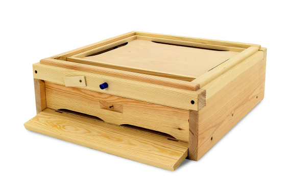 Dennica wyskoka z poławiaczem pyłku i siatką do osypu Warrozy, Wielkopolska Oferujemy multifukcyjną dennicę wielkopolską do łatwego pozyskiwania pyłku ze specjalną siatką i szufladą do badania osypu warrozy. Wymiary zewnętrzne dennicy: wysokość dennicy 14,5 cm szerokość 44,7 cm długość 44,7 cm Z przodu dennicy znajduje się wlotek na zawiasach mający otwory wentylacyjne, który można zamknąć na czas przewożenia pszczół na pożytki oraz wyjmowany mostek. Nad wlotkiem w górnej części dennicy znajdują się otwory dla trutni służące jako wyjście podczas poławiania pyłku - od wewnątrz zabezpieczone metalową zasuwką, którą zamykamy w czasie przewożenia pszczół. Tył dennicy jest otwierany co pozwala wyjąć pozyskany pyłek lub zbadać osyp warrozy bez niepotrzebnego zdejmowania i podnoszenia korpusów jak też nie zakłócania spokoju pszczół. Poławiacz zbudowany jest ze sklejki i wbudowanej kraty pozyskującej pyłek. Przód poławiacza ma skośne lotnisko ułatwiające pszczołą wejście do poławiacza. Pojemnik na pyłek zbudowany jest ze sklejki przy czym jego dno powleczone jest drobną siateczką, przez którą pyłek nie przeleci natomiast pozwala to na dobrą wentylację zabezpieczającą pyłek przed wilgocią. Poławiacz jak i sam pojemnik na pyłek to części dennicy, które można wyjąć z dennicy poprzez jej tylną część na czas leczenia jak też na okres zimowania pszczół - pozwala to na utworzenie tzw, poduszki powietrznej - miejsca w którym pszczoły mogą swobodnie utworzyć kłąb i są zabezpieczone przed zimnem. W skład dennicy wchodzi wkładka higieniczna ze sklejki służąca zabezpieczeniu przed dziką zabudową pod ramkami w czasie pożytków jak też zabezpiecza pyłek do którego nie wpadają zanieczyszczenia z ula tylko na tej wkładce się zatrzymują. Dno dennicy składa się z siatki i szuflady (zrobionej ze sklejki) służące do kontroli osypu warrozy oraz do regulacji wentylacji ula. W okresie zabiegów leczniczych na spód szuflady powinno zastosować się wkładkę z lepką substancją , która unieruchamia opadłe za dno pasożyty, zaś sama siatka chroni pszczoły przed dostępem do nich. Na czas zimowli rodziny pszczelej wyjmujemy z dennicy poławiacz i wkładkę higieniczną , przez co tworzy się tzw. poduszka powietrzna - przestrzeń, w której pszczoły swobodnie w dolnej części ramek mogą utworzyć kłąb - co jest wielkim atutem tej dennicy. Tył dennicy jest otwierany co pozwala na początku sezonu pszczelarskiego wyczyścić dennice z pozostałości po zimowli odciążając pszczoły od tej pracy, bez podnoszenia korpusów i zbędnego niepokojenia rodziny. Główne zalety oferowanej dennicy : łatwe, wygodne pozyskiwanie pyłku monitorowanie osypu warrozy oraz możliwość regulacji wentylacji, solidne wykonanie, prosta w czyszczeniu i dezynfekcji, atrakcyjna cena. Zobacz też wkładkę do osypu Warrozy oraz lek do zwalczania Warrozy OXYBEE .